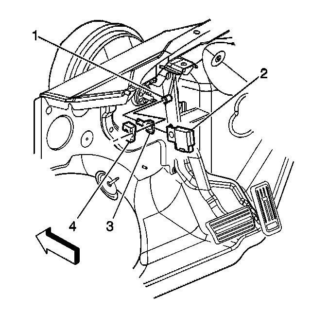 1. Disconnect the electrical connector from the stop lamp switch (2).