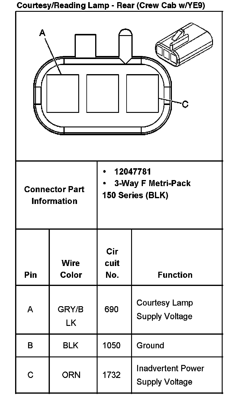 Courtesy/Reading Lamp - Rear (Crew Cab With RPO Code YE9):