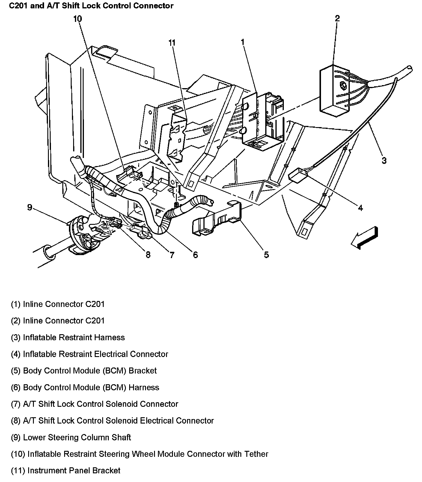 C201 And A/T Shift Lock Control Connector: