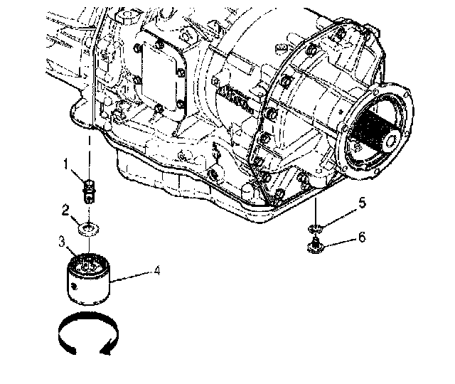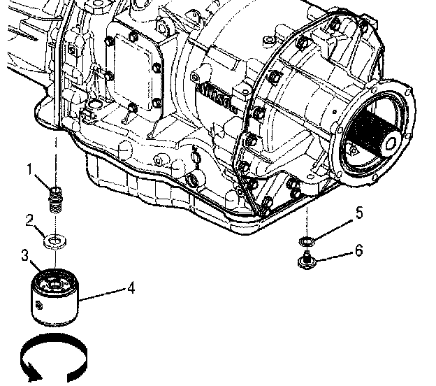 3. Install, by hand, the control main filter (4) until the gasket on the control main filter touches the converter housing.
