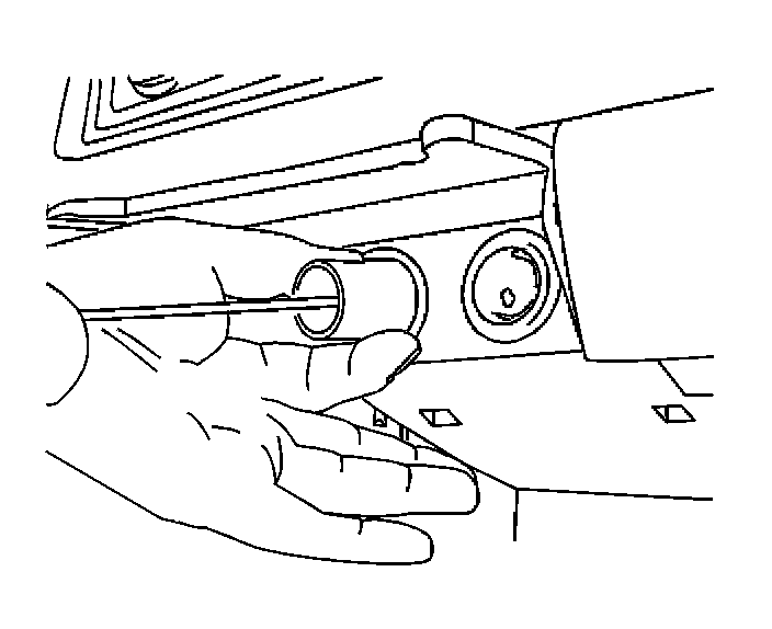 3. Insert the J 42059 into the socket sleeve. Tilt the tool so that the tool fits into the slots on the sides of the socket sleeve.