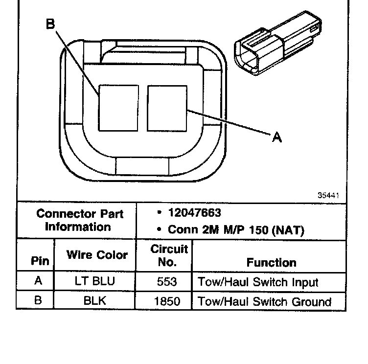 Tow/Haul Switch Connector, Column Wiring Harness Side:
