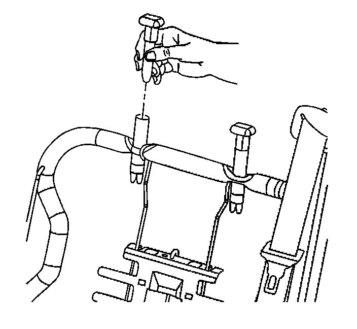1. Install the head restraint retainers by pressing into the seat back frame until the retaining tabs snap into place at the bottom of the frame opening.