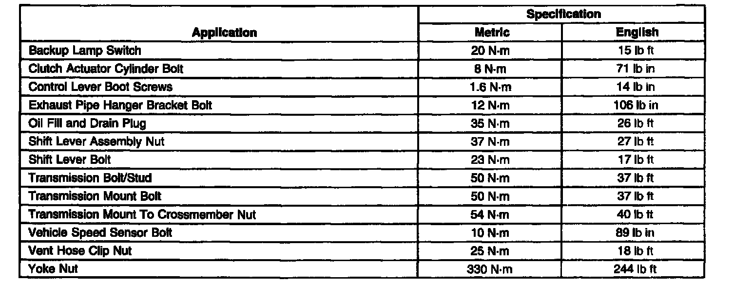 Fastener Tightening Specifications: