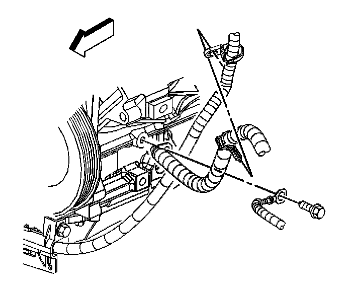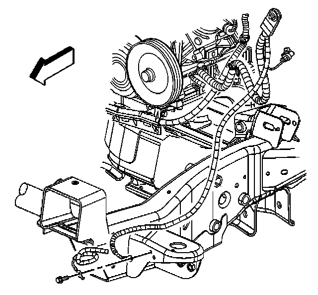 11. Remove the forward lamp wiring harness ground/negative cable bolt.