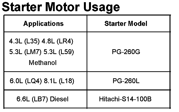 Starter Motor Usage:
