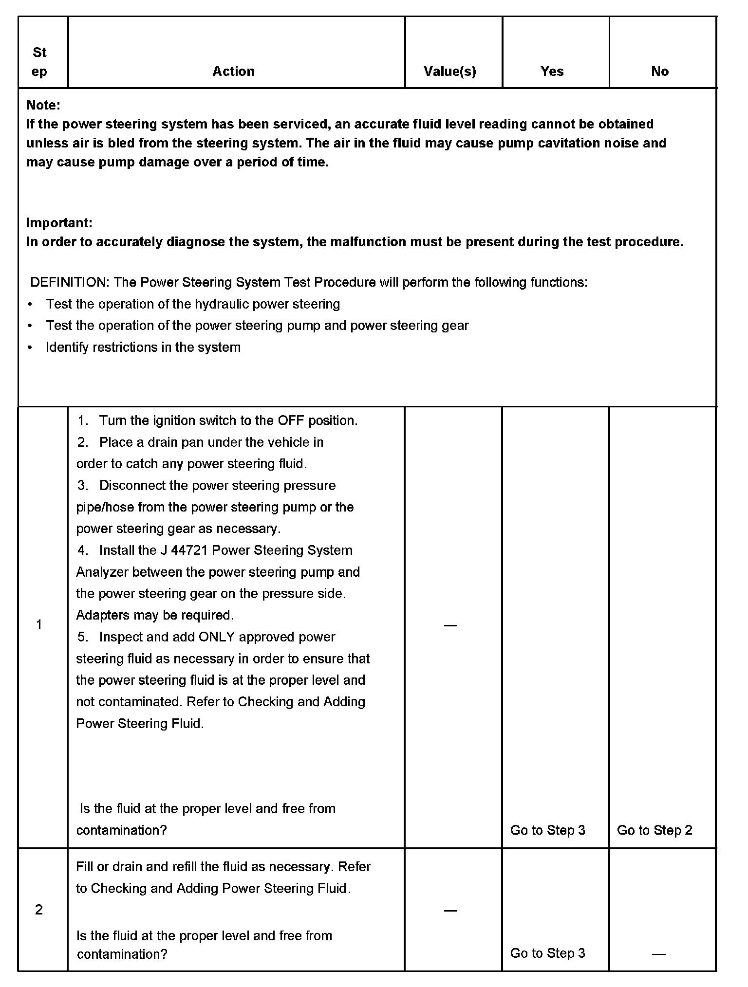 POWER STEERING SYSTEM TEST PROCEDURERack And Pinion System: