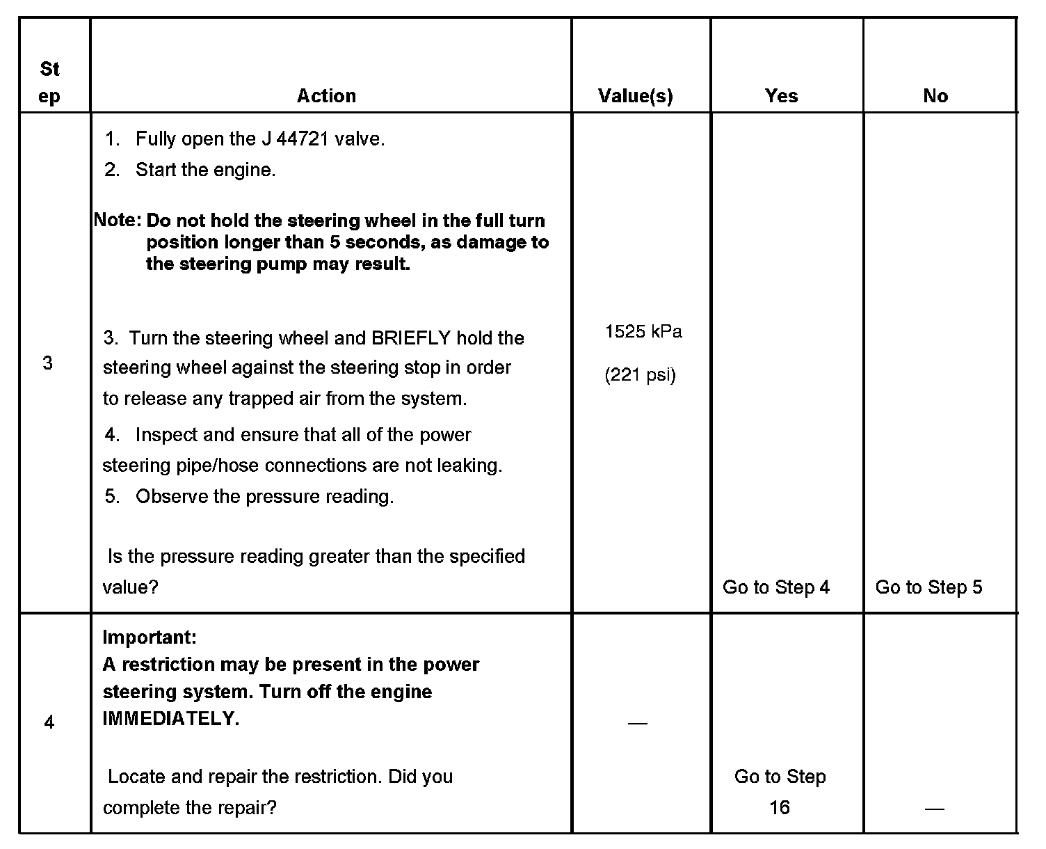 Power Steering System Test Procedure
