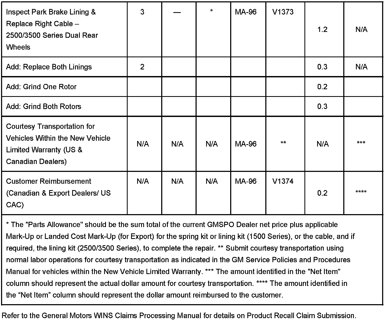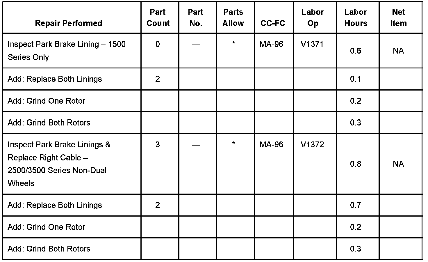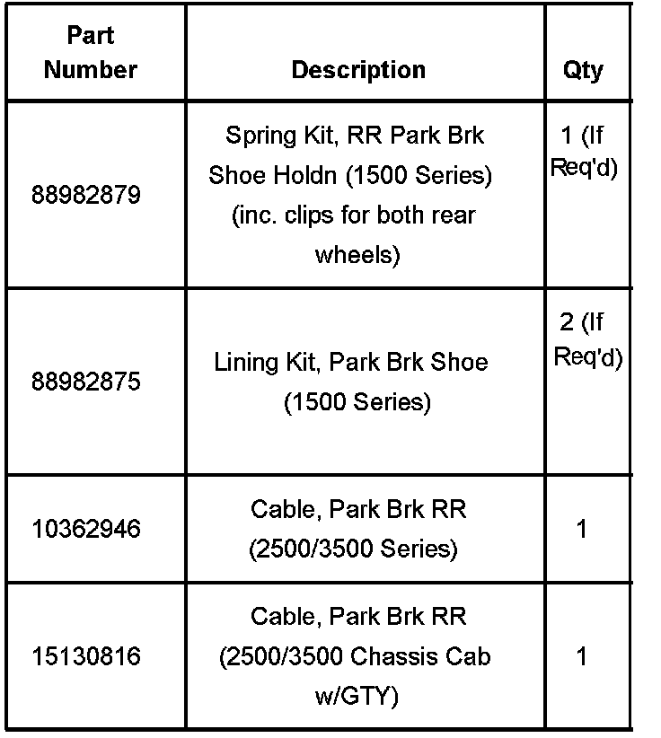 2500-3500 Series - Dealers are to inspect the parking brake lining thickness on both rear brakes and install a new rear right-hand parking brake cable assembly. Also, depending on the amount of lining remaining, install new parking brake shoes (both rear brakes).