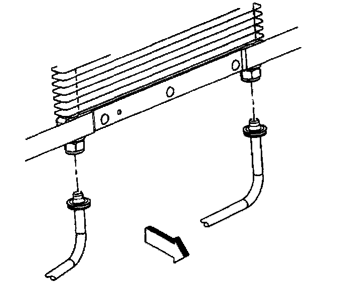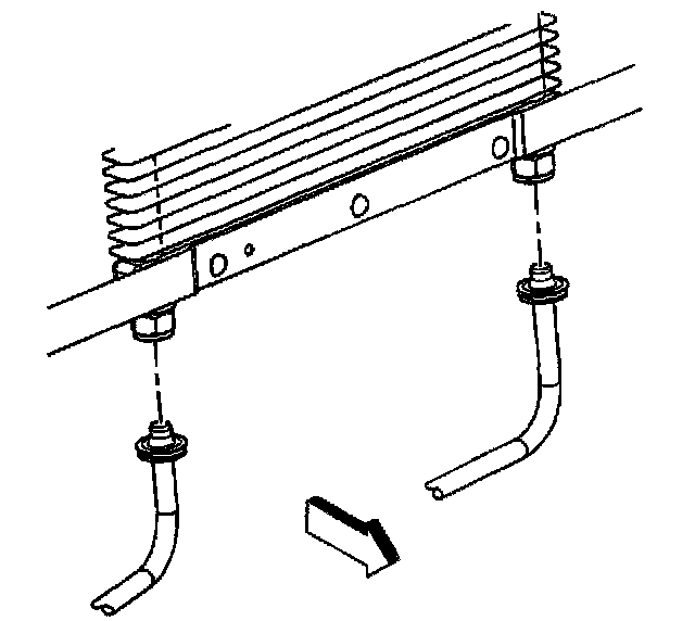21. For vehicles with auxiliary cooling, install the oil cooling lines to the auxiliary oil cooler.