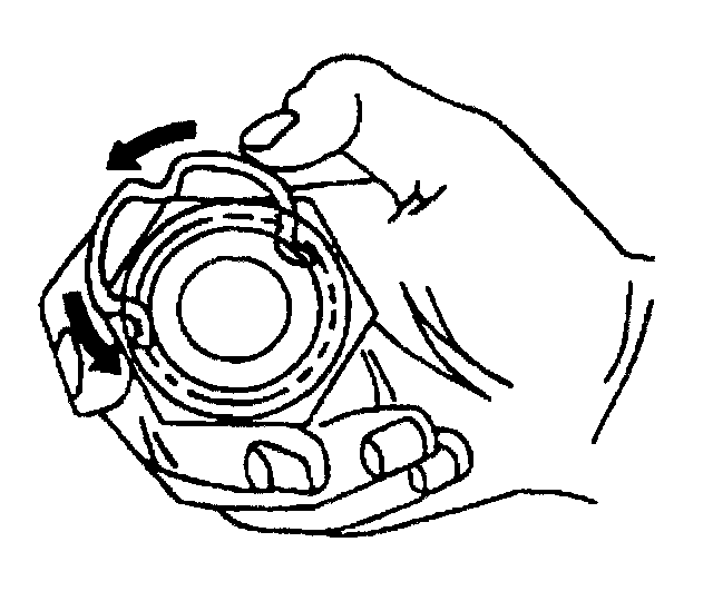 6. Pull on the open ends of the retaining ring in order to rotate the retaining ring around the quick connect fitting until the retaining ring is out of the fitting. Discard the retaining ring.
