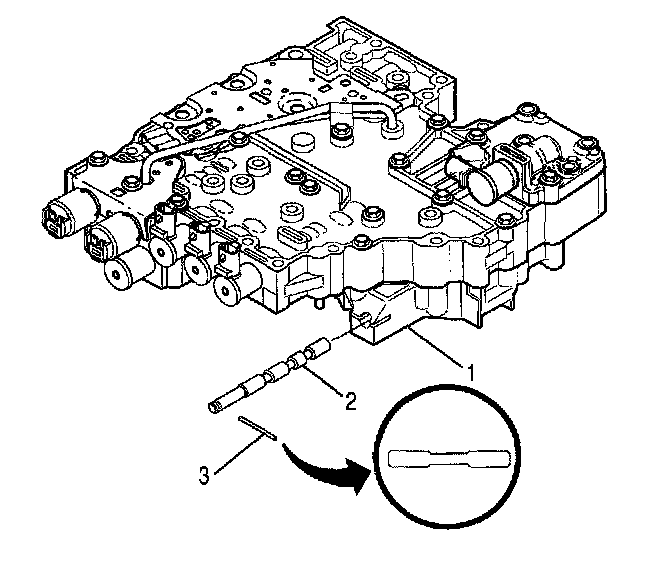 6. Align the control valve assembly with the main housing while installing selector valve pin (3) into detent lever (1).