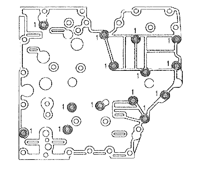 7. Install 14 bolts (1) retaining the valve bodies together.