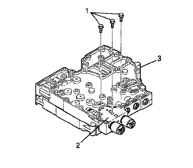 4. Align the shift valve body assembly (1) with the main valve body dowel pins (3).