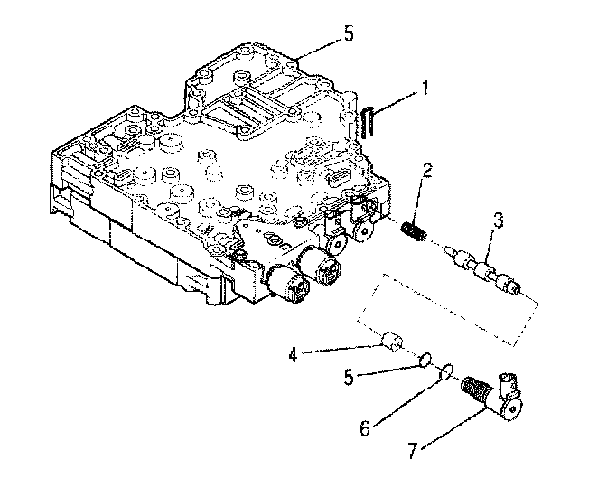 46. Install the G solenoid retainer (5) into the bottom of the valve body.