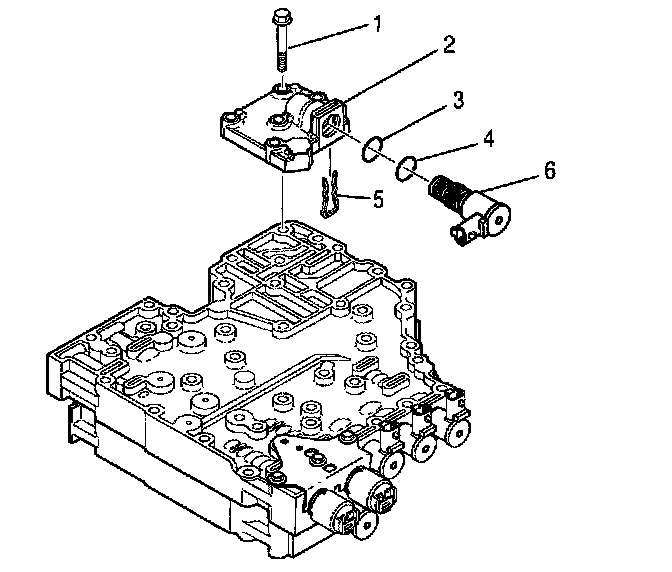 ^ P/N 29536833 is printed on the C ON/OFF shift solenoid (5).
