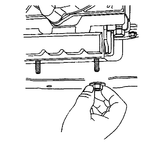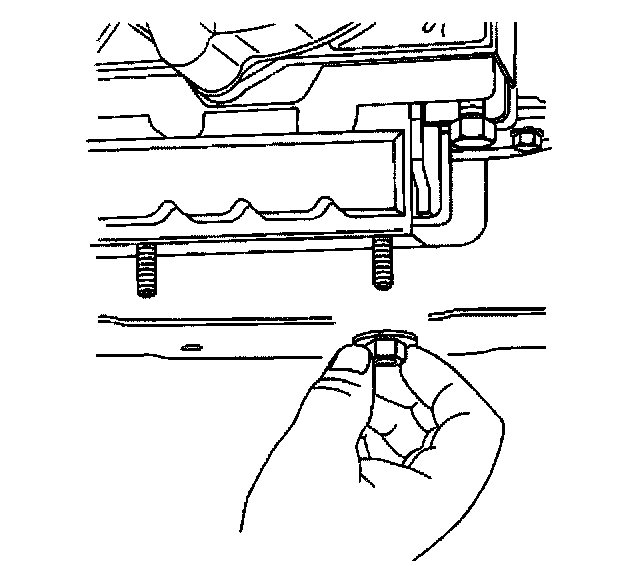 9. Install the fill tube to the studs on the converter housing. Install the nuts to the studs that retain the fill tube.