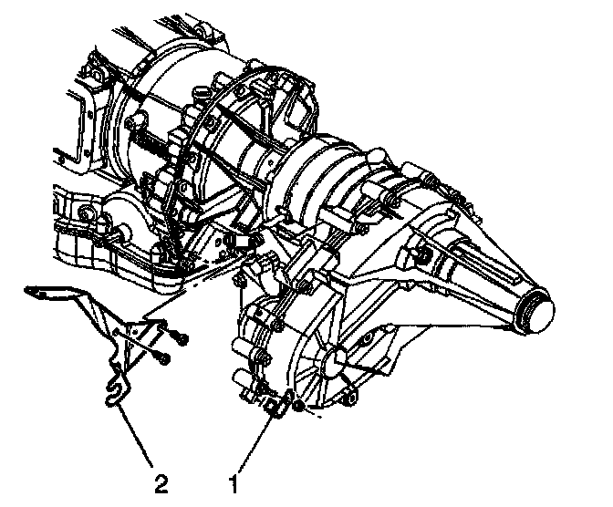 22. Connect the electrical connectors to the turbine speed sensor (1) and the input speed sensor (2).