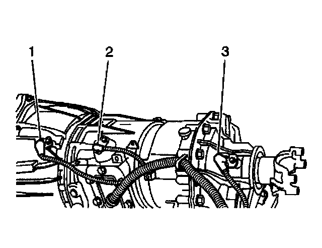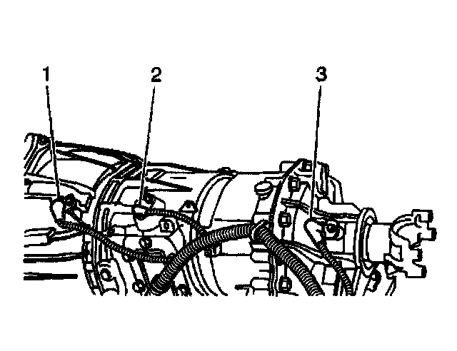 21. Connect the electrical connector to the output speed sensor (3). This sensor is located on the transfer case if the vehicle is equipped with 4WD, and will be connected during transfer case installation.