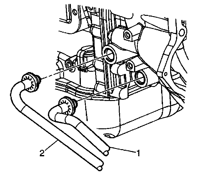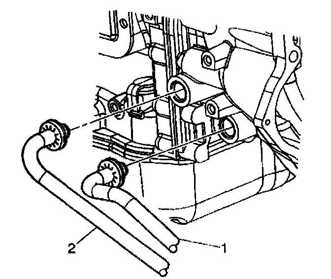 25. Disconnect the transmission oil cooler lines (1,2) from the transmission.