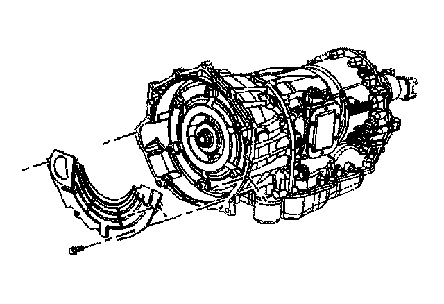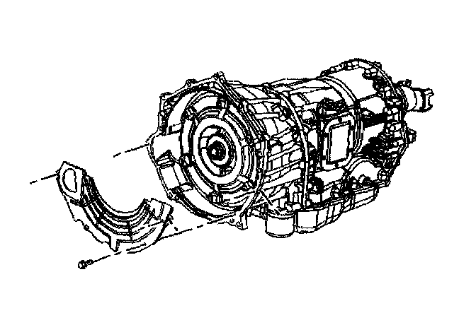10. Remove the converter housing access cover (1) to align the first torque converter bolt. Use the marks made during disassembly.