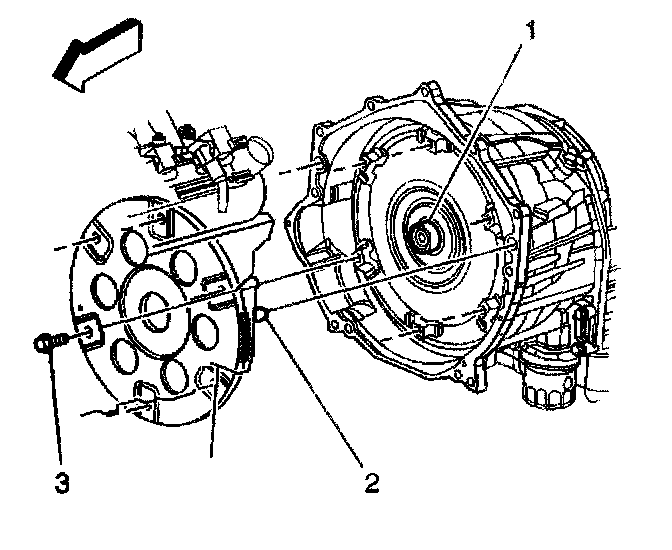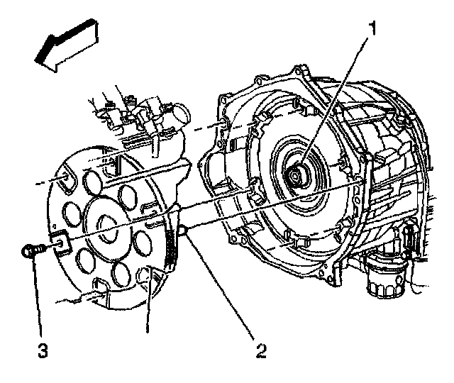 Important: Do not install the transmission by drawing it to the engine using the studs and bolts.