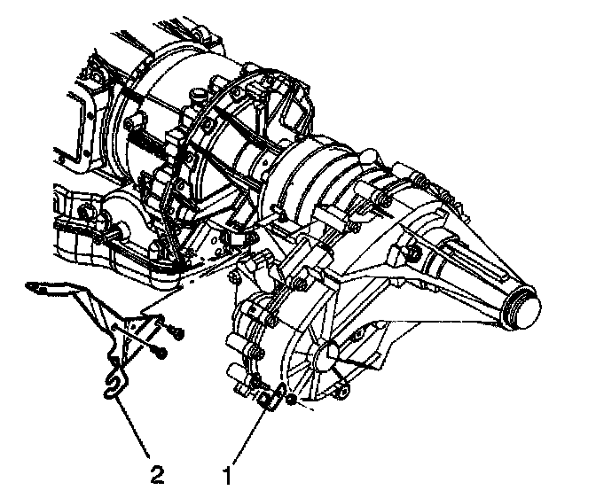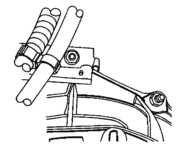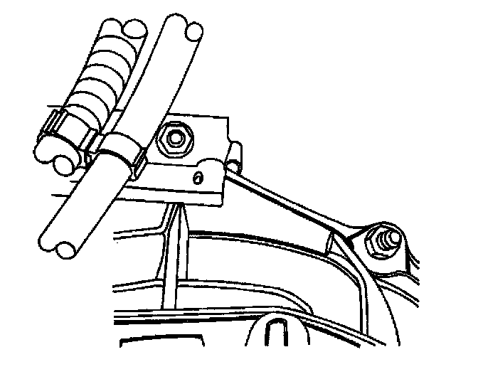 8. Install the wire harness/vent tube retaining bracket to the stud on the converter housing. Install the nut to the stud that retains the bracket.