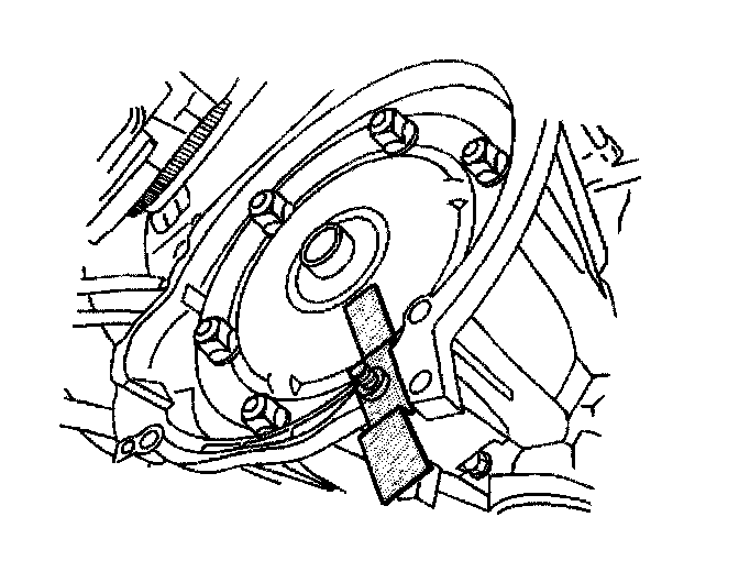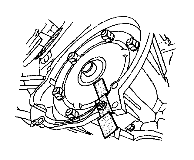 1. Install the J 21366 in order to keep the torque converter from sliding off of the transmission turbine shaft.