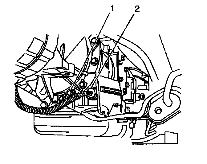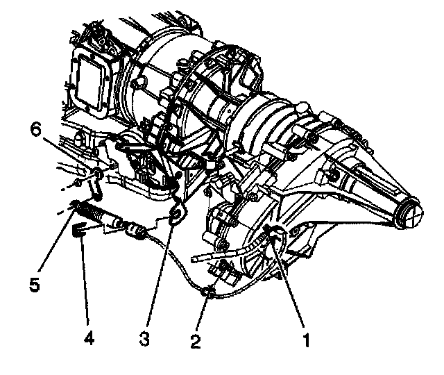 14. Remove the shift cable (2) from the selector lever ball stud (5) and bracket (3).