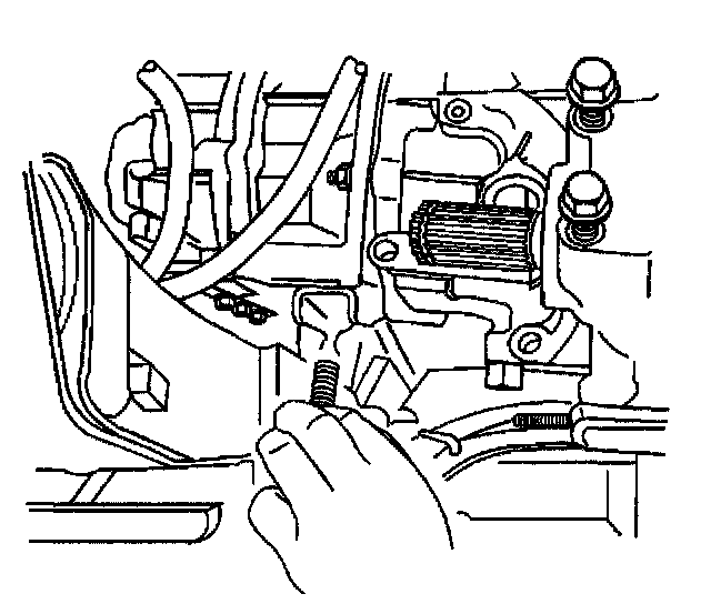23. Install the fuel line bracket to the stud on the transmission converter housing.
