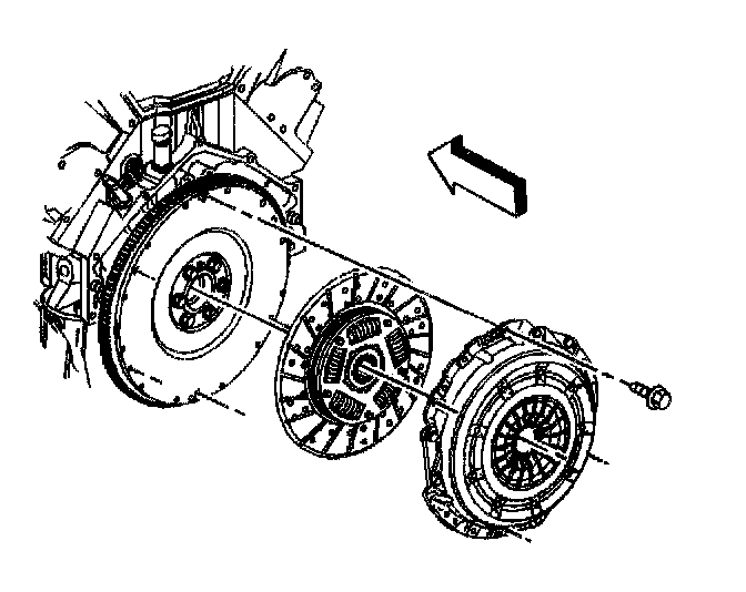 6. Remove the clutch pressure plate and disc from the dowel pins.