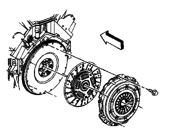 5. If equipped with a 4.8L or 6.0L engine, install the clutch pressure plate and driven plate to the dowel pins.