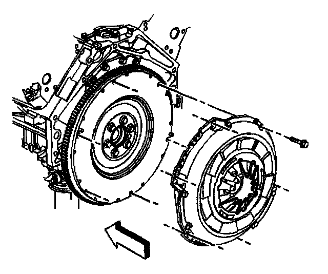 2. Mark the flywheel and a lug on the clutch pressure plate for alignment purposes on installation.