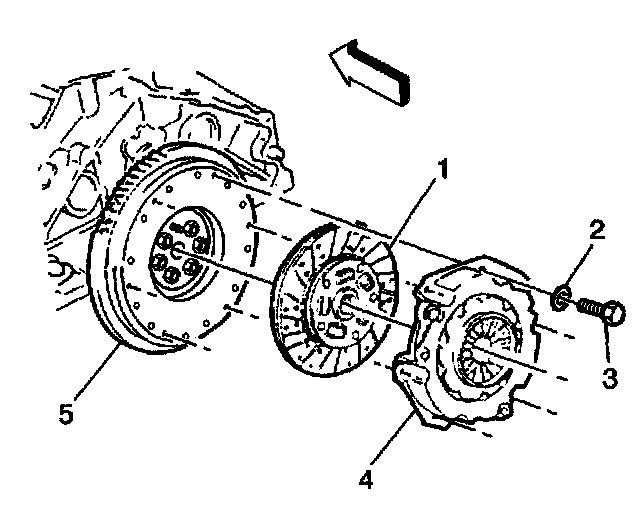 4. Remove the clutch pressure plate (4) and disc (1).