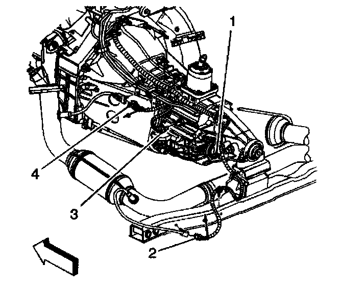 9. If equipped with 4WD, remove the clamp securing the harness to the fuel feed/return pipe bracket.