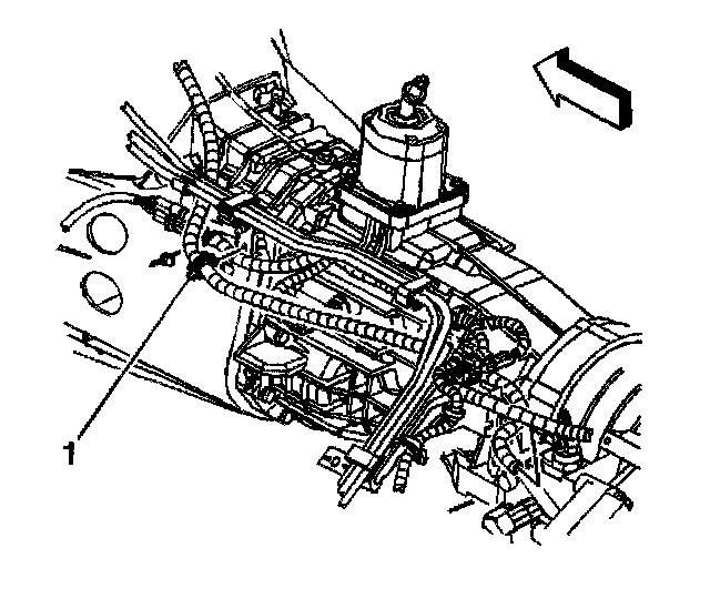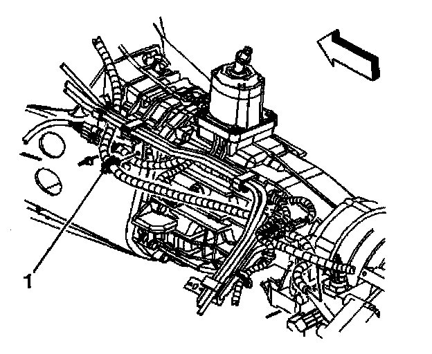 11. If equipped with 4WD, remove the vent hose clip (1) from the fuel feed/return hose bracket.