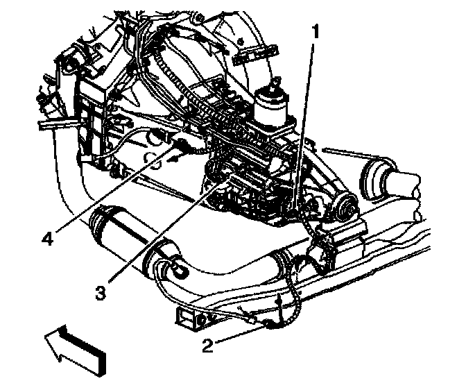 5. Install the bolts securing the bottom right side of the transmission to the engine. Bolt (1) secures the transmission cover on the 4.3L engine only.