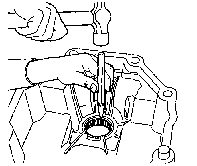 3. Using a hammer and a suitable punch, remove the rear bearing. Do not reuse the bearing after removal.