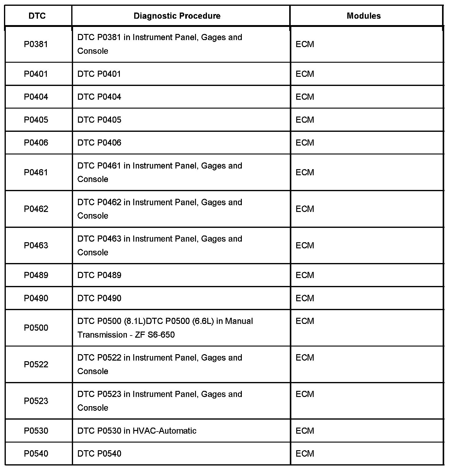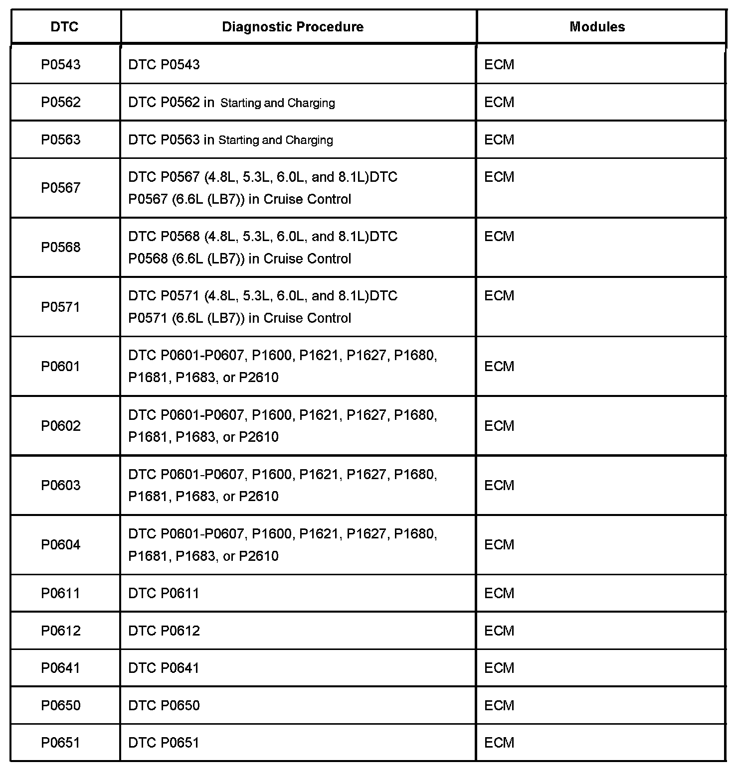 P0543 - P0651: