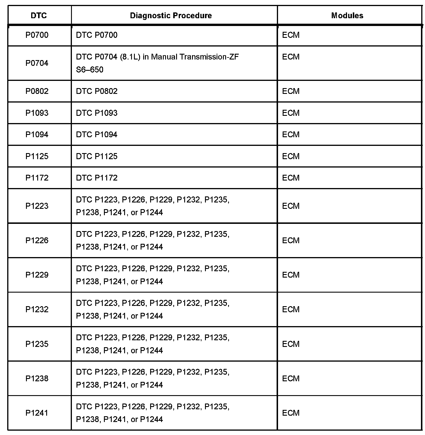 A L L Diagnostic Trouble Codes ( DTC )