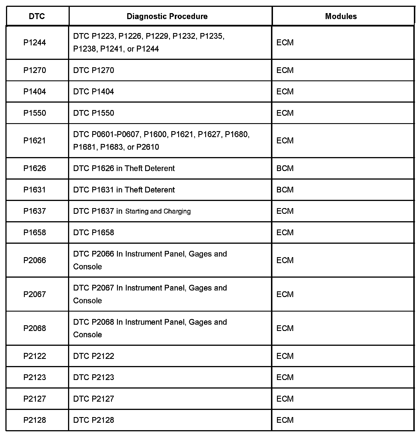 P0016 - P0087: