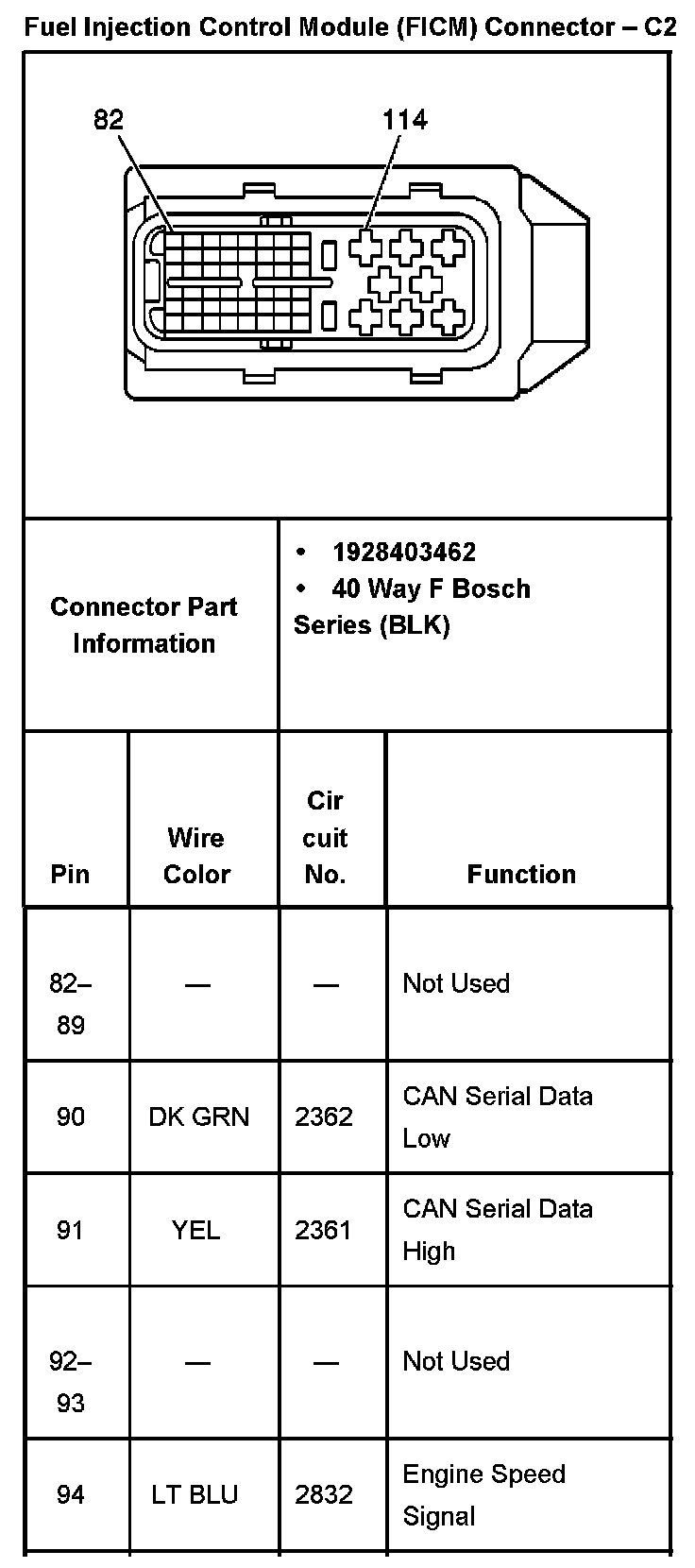 Fuel Injection Control Module (FICM) Connector - C2 Part 2: