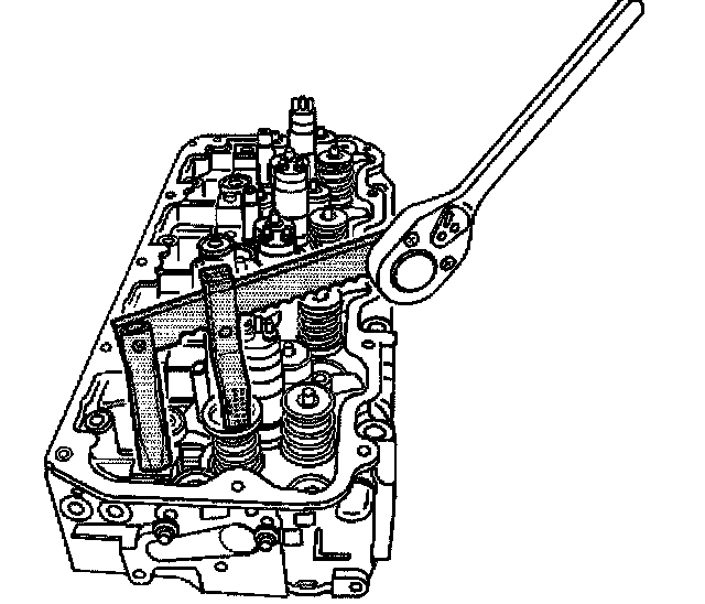 Caution: Compressed valve springs have high tension against the valve spring compressor. Valve springs that are not properly compressed by or released from the valve spring compressor can be ejected from the valve spring compressor with intense force. Use care when compressing or releasing the valve spring with the valve spring compressor and when removing or installing the valve stem keys. Failing to use care may cause personal injury.