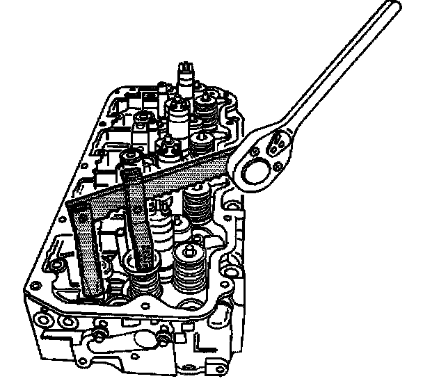 2. Remove the valve rocker arm shaft, valve bridges, and pushrods for the cylinder head being service.