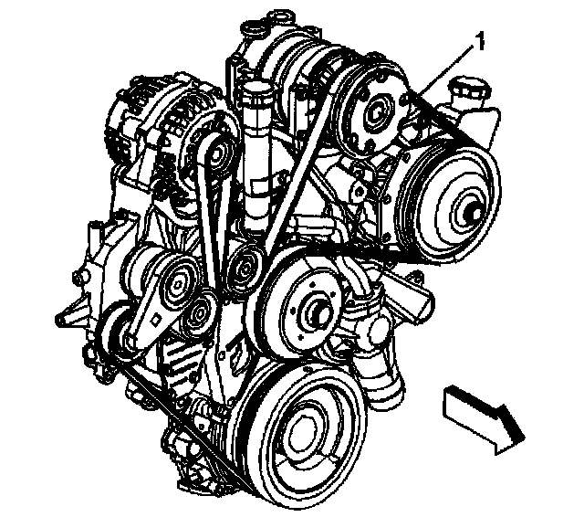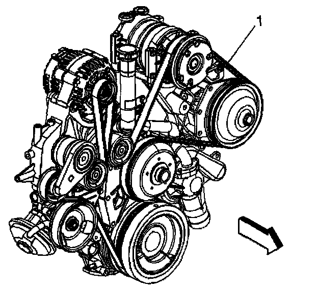 3. Remove the drive belt (1) from the drive pulleys, if equipped with a single generator and vacuum pump (California emissions).