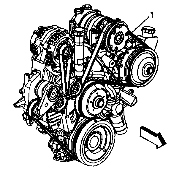 5. Remove the drive belt (1) from the drive pulleys, if equipped with dual generators and vacuum pump (California emissions).