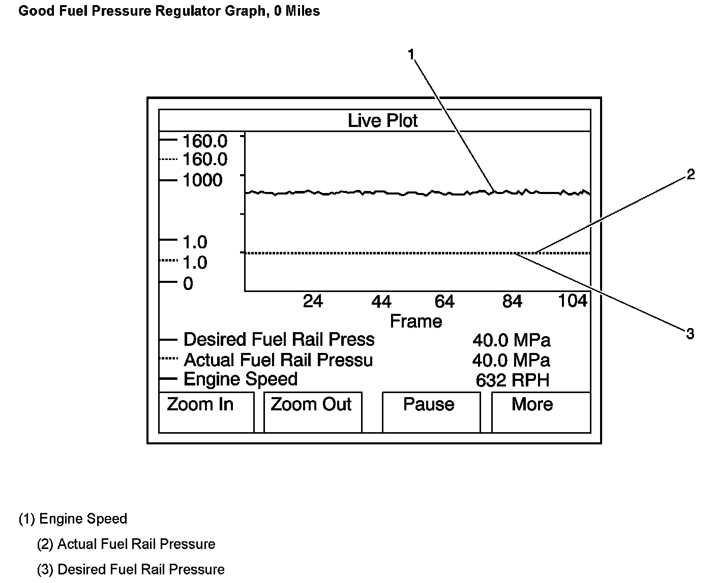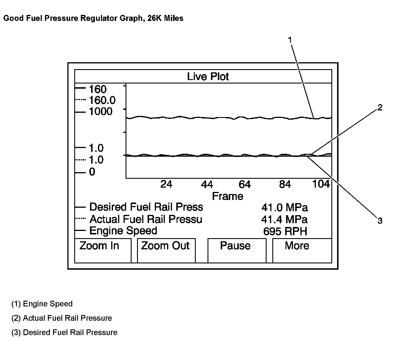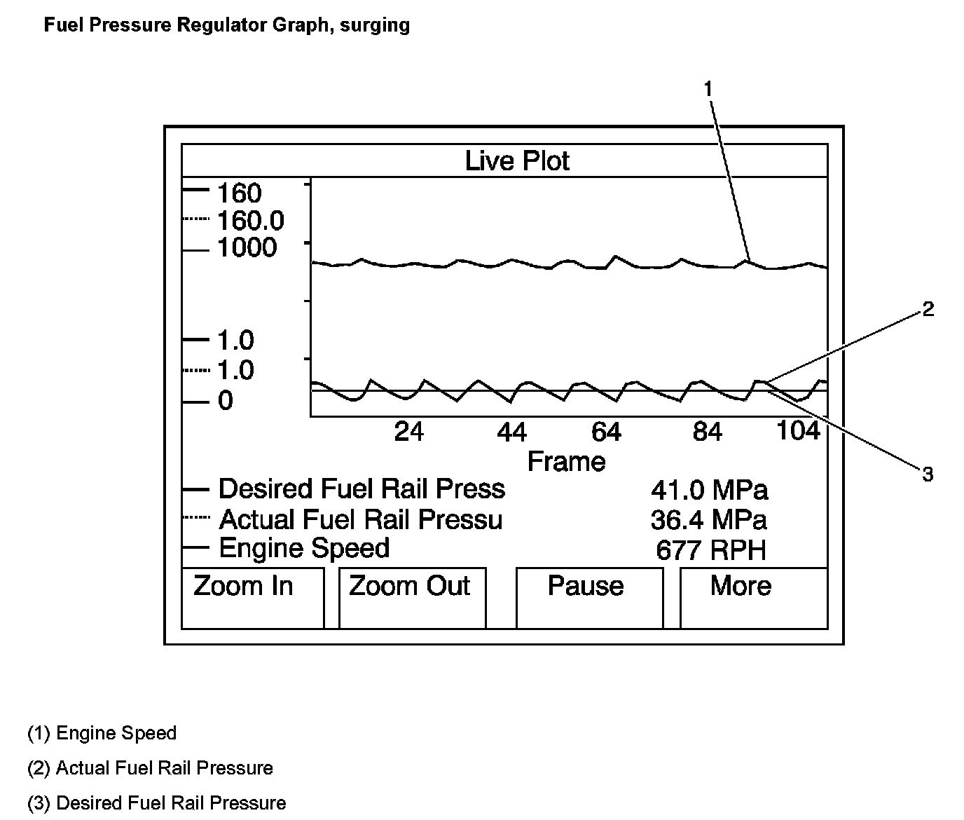 4. If there is a violent fluctuation in the Actual Fuel Rail pressure, as seen in the third Graphic above, replace the fuel pressure regulator.