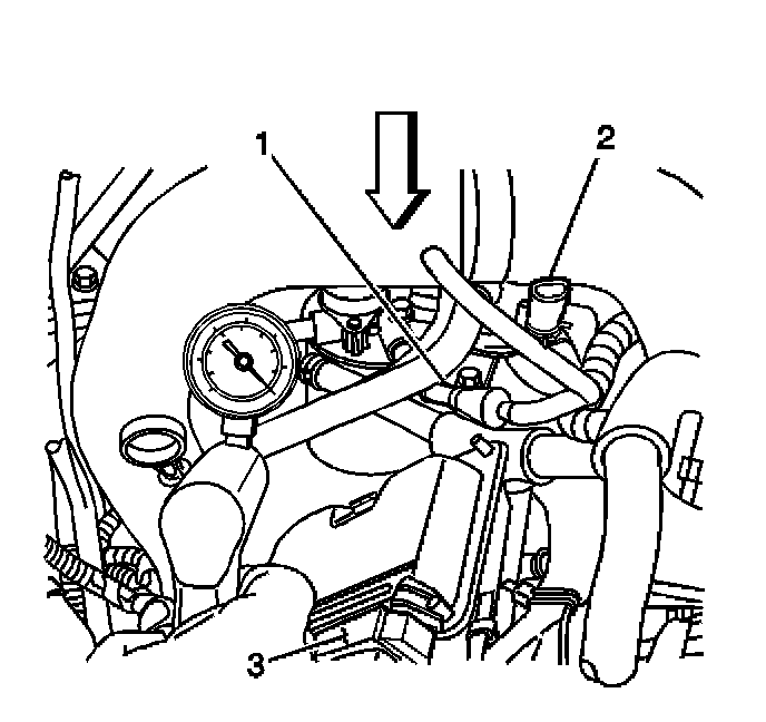 1. Install the J 44638 Vacuum Gage to the fuel system service port on the right front side of the engine.