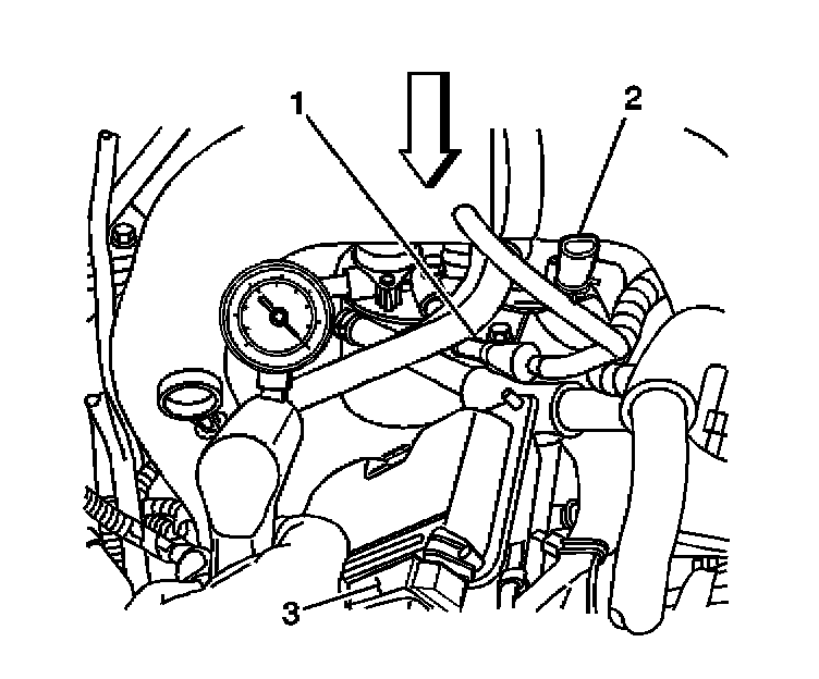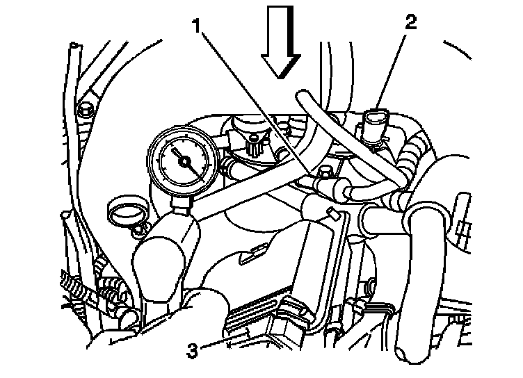 1. Install the J 44638 Vacuum Gage to the fuel system service port on the right front side of the engine.