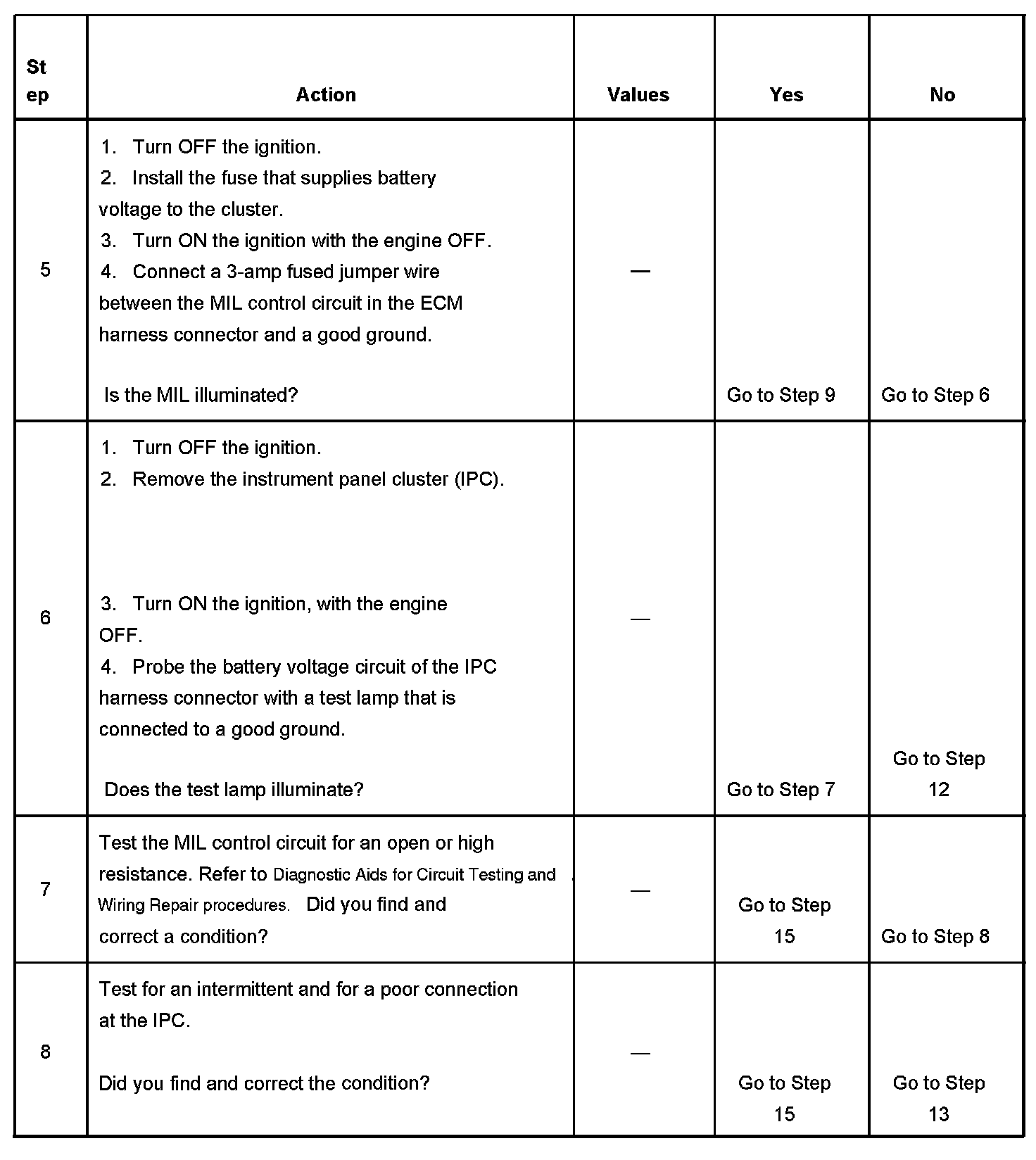 4. This step tests for a short to voltage on the MIL control circuit. With the fuse removed there should be no voltage on the MIL control circuit.
